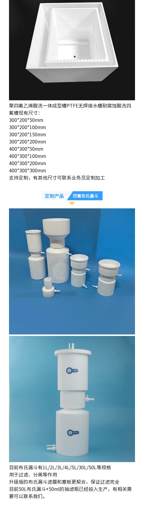 公司新聞 四氟大桶槽酸洗一體成型槽PTFE無焊接水槽 更新時間 2021-10-13 12:55:08 閱讀 1869 上一篇:氟化氫過濾裝置-四氟布氏漏斗 下一篇:推出半導(dǎo)體級專用標準參考物質(zhì)容器——PFA試劑瓶